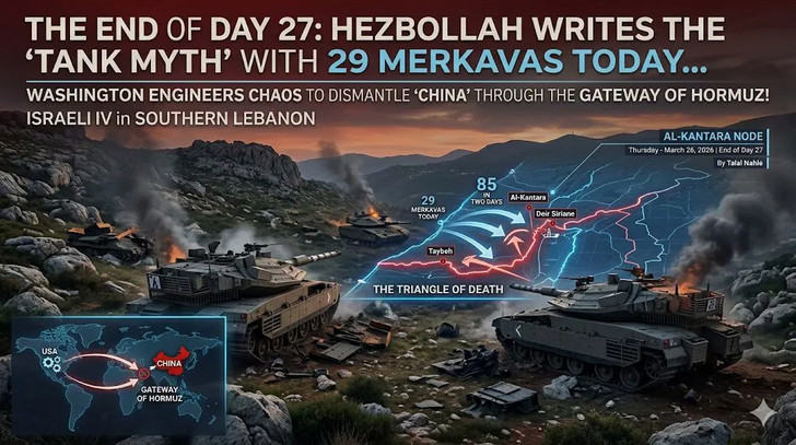 Le Hezbollah écrit aujourd'hui le "mythe du char" avec 29 Merkava... tandis que Washington orchestre le chaos pour "faire tomber la Chine" par le détroit d'Ormuz. - Talal Nahle