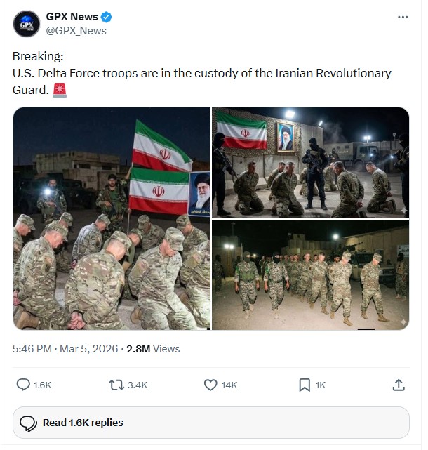 Wars have always been filled with dishonest propaganda and wishful thinking, and producing such material has become far easier with the recent advent of powerful AI systems. Less than one week after the beginning of the current war, Twitter and other social media outlets were flooded with claims that a large unit of American special forces troops had been sent into Iran, defeated in battle, and then taken into captivity. Just one of those posts was retweeted thousands of times, attracting some 2.8 million views.