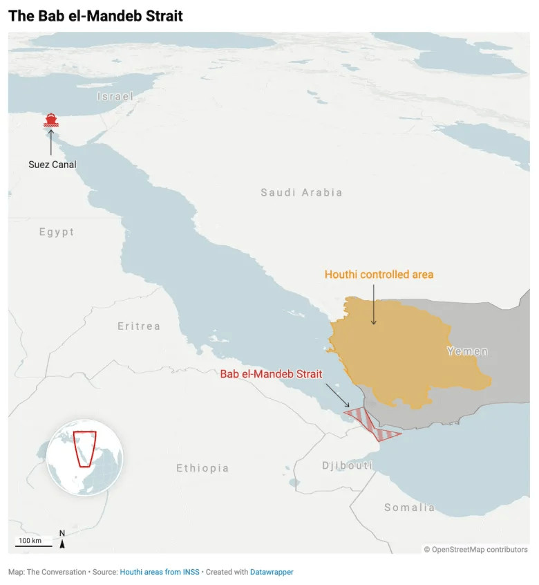 Bloomberg  rapporte que l'Iran a pris contact avec les Houthis en vue d'une campagne similaire. Voici pourquoi tous les regards seront de nouveau tournés vers les Houthis, le point de passage de Bab el-Mandeb et la mer Rouge, et quelles conséquences la perturbation d'un second point de passage stratégique majeur pourrait avoir sur l'économie mondiale.