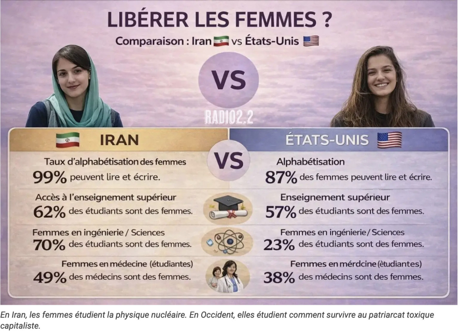 Cette comparaison entre l'Iran et les États-Unis n'est pas un plaidoyer pour le régime de Téhéran. C'est un rappel à l'humilité pour ceux qui, en Occident, croient détenir le monopole du progrès social. Les chiffres sont têtus : en matière d'éducation féminine, la République islamique surpasse la première puissance mondiale. Une vérité qui mérite d'être regardée en face, sans œillères idéologiques.