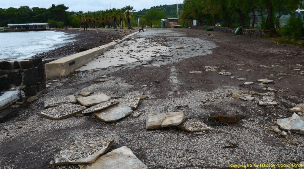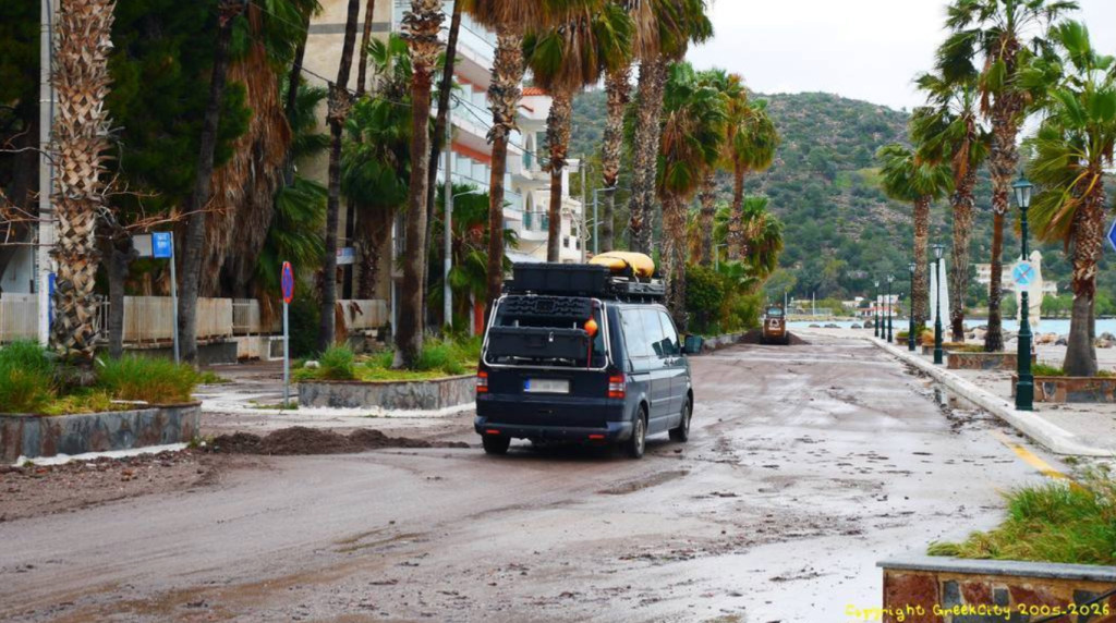 Deux jours plus tard, une tempête accompagnée de fortes précipitations a comme on dit "frappé la région", causant de nombreux dégâts à Póros déjà, et également dans la région du Péloponnèse proche.