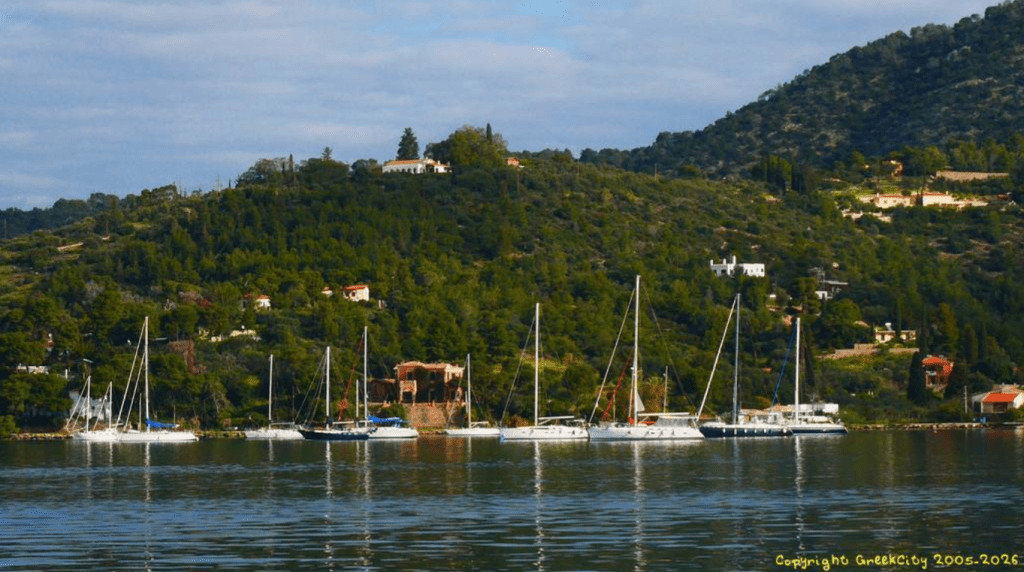 Pourtant le flegme apparent qui règne en ces lieux en l'état actuel des choses, est plus qu'appréciable. En face de la jetée, on distingue la villa Galiní - littéralement "la villa de la Sérénité", construite en front de mer, cette belle demeure où jadis le poète et diplomate Georges Seféris avait séjourné à bien de fois.