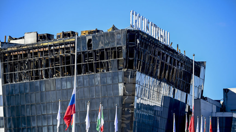 Le bâtiment du Crocus City Hall, détruit lors de l'attentat du 22 mars 2024.
