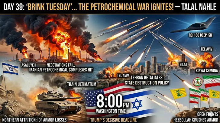 Le soleil se lève sur le "mardi fatidique" - ce jour que Trump a qualifié de "jour des centrales électriques et des ponts". Les heures passent et le fossé entre Washington et Téhéran se creuse inexorablement à l'approche de 20 h (heure de Washington). Le théâtre des opérations parle le langage de l'anéantissement mutuel. Israël a devancé l'appel en lançant une "guerre pétrochimique" dévastatrice destinée à priver l'Iran de son poumon économique, émettant un ultimatum psychologique sans précédent pour immobiliser les trains iraniens. En représailles, Téhéran et son axe ont embrasé le ciel israélien de missiles, d'Eilat à Kiryat Shmona, tandis que les dégâts infligés au parc blindé de l'armée israélienne dans le sud du Liban atteignent un nouveau record (172 véhicules détruits).