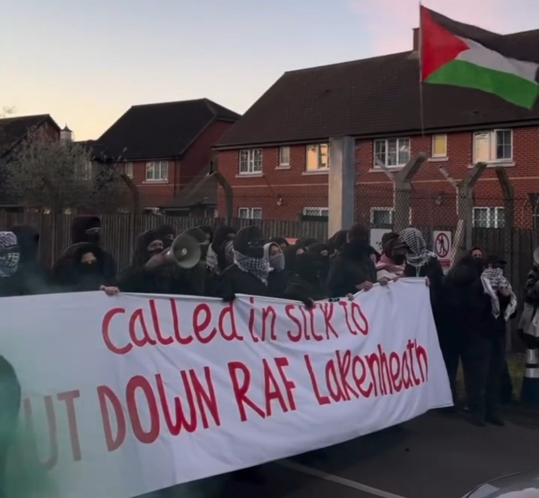 video.europalestine.comDes militants ont bloqué mardi la base aérienne de Lakenheath au Royaume-Uni pour protester contre son utilisation pour faciliter les attaques américano-israéliennes contre l'Iran.