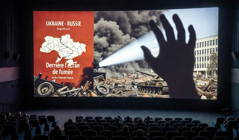 Le 19 mars 2026, une projection de film devait avoir lieu à Bruxelles. Le film s'intitule "Ukraine - Russie, derrière le rideau de fumée". Il a été réalisé par Alexandre Penasse, journaliste et directeur de Kairos, média indépendant belge actif depuis 2013. Ce film a déjà été projeté dans plusieurs pays. Il s'appuie sur des sources que personne ne conteste : Le Monde, BFM TV, Euronews, des archives officielles de dirigeants européens et ukrainiens. Il donne la parole à des Ukrainiens - des civils, une institutrice, une étudiante de seize ans, des soldats. Il se conclut par des appels unanimes à la paix.