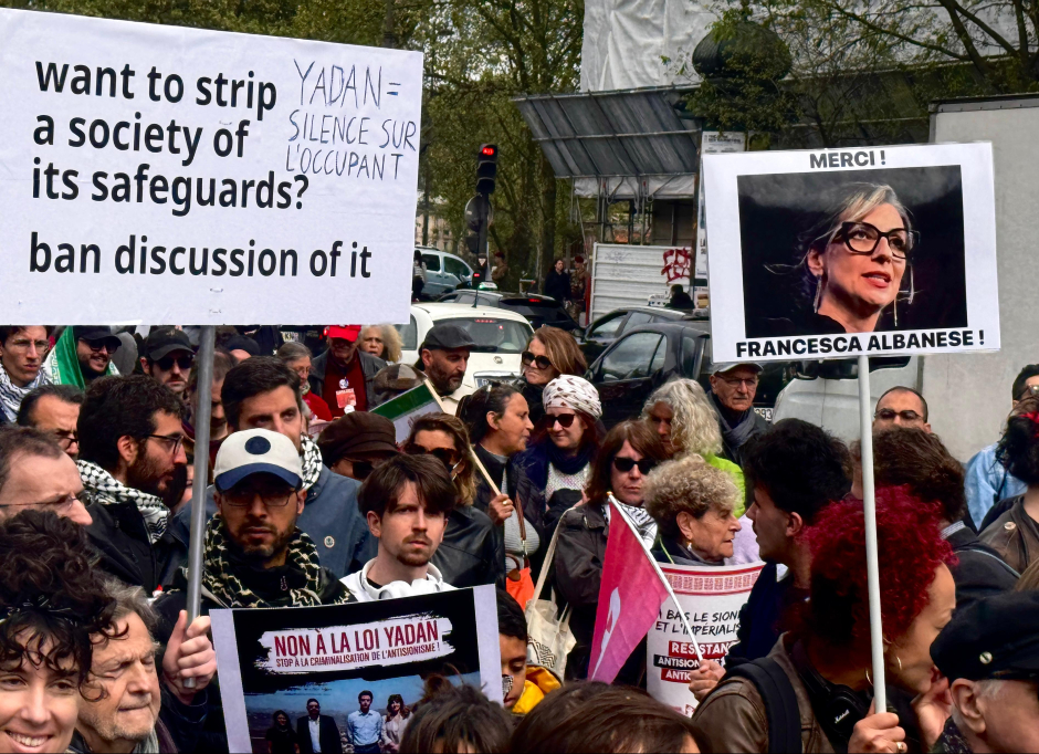Avant les rassemblements prévus aux Invalides, devant le Parlement, jeudi et vendredi prochains, jours de débat sur la loi Yadan à l'Assemblée Nationale, les militants de nombreuses associations, ont occupé la rue ce dimanche à Paris pour dire leur rejet de cette manipulation politique, visant à faire taire les opposants à la politique Israël, sous couvert de lutte contre l'antisémitisme.