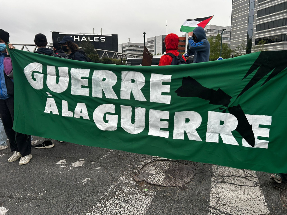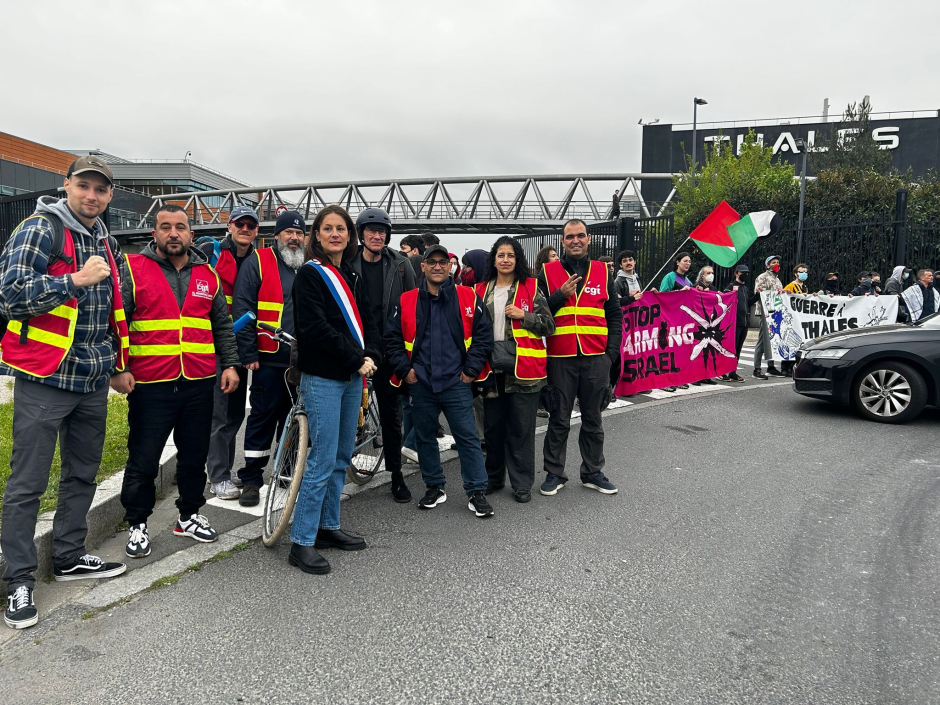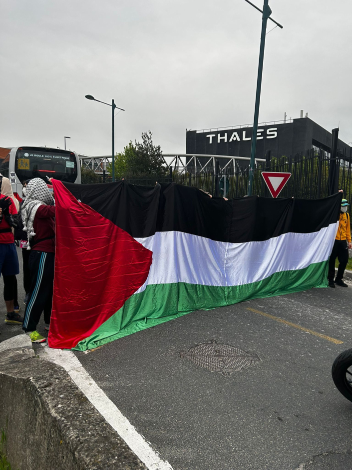 Des militants de plusieurs organisations ont bloqué ce lundi matin le rond-point qui amène à l'usine Thalès en région parisienne.