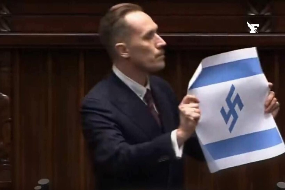 Un député du parti d'opposition d'extrême droite polonaise a accusé l'État d'Israël de perpétrer "un génocide" au Moyen Orient, et brandi un drapeau israélien frappé d'une croix gammée nazie, ce mardi lors d'une réunion du Parlement polonais.