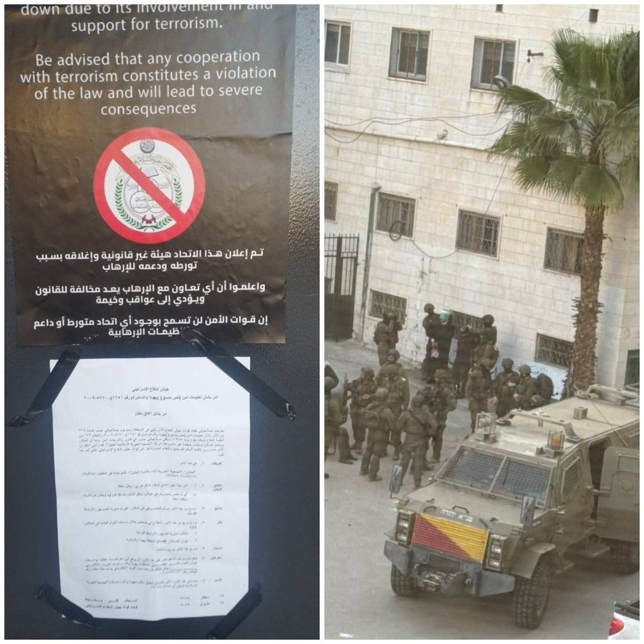 Son domicile a été saccagé et l'armée a fermé et interdit définitivement la Société caritative islamique d'Hébron, l'une des plus anciennes et des plus importantes organisations caritatives de Cisjordanie occupée.