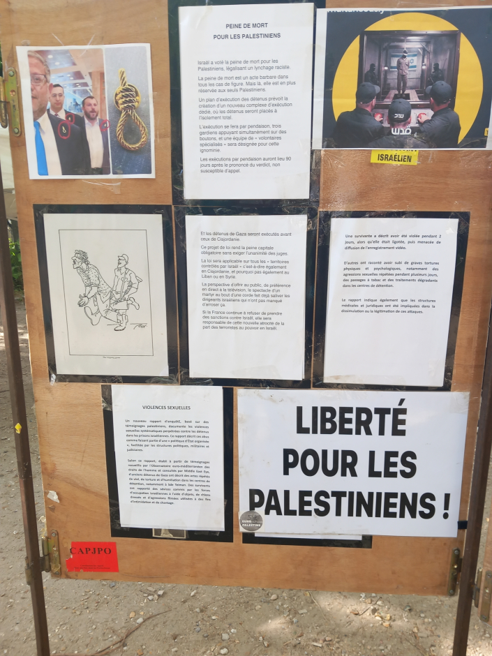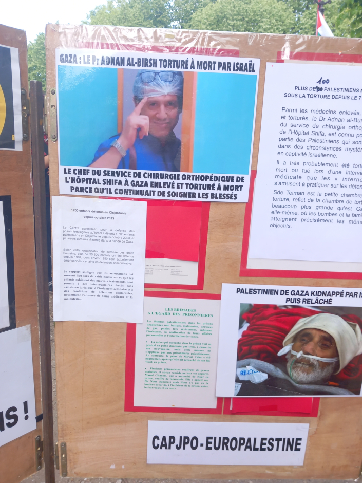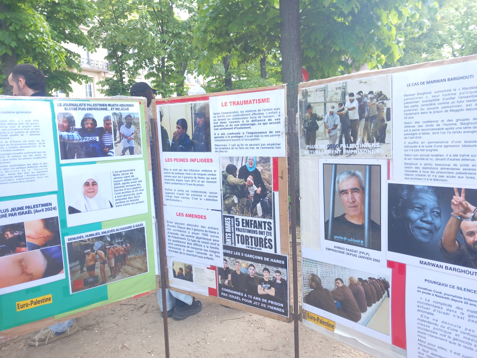 En plein rassemblement contre la loi Yadan, des centaines de personnes ont pu prendre connaissance de la situation des otages palestiniens dans les geôles de l'occupant israélien
