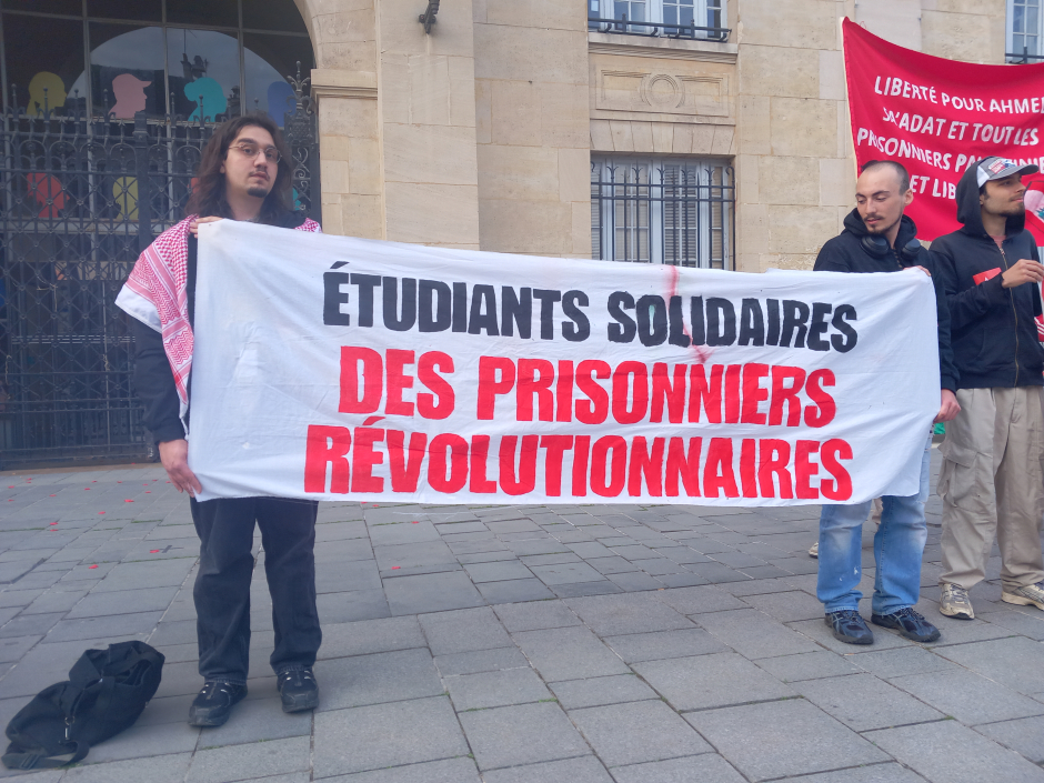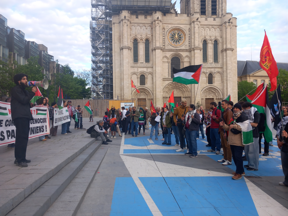 Vendredi soir, devant la mairie de Saint-Denis, un rassemblement pour la libération des 10.000 otages palestiniens et contre la peine de mort qu'Israël a votée pour les prisonniers palestiniens de son choix.