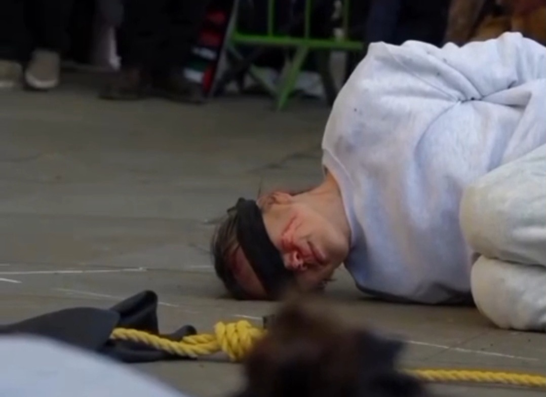 Devant le 10 Downing Street (premier ministre) à Londres, des militants ont présenté une performance impressionnante en solidarité avec les détenus palestiniens dans les tristement célèbres camps de détention israéliens.