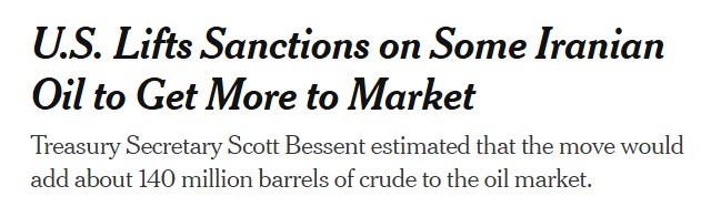 Similarly, former Larry Johnson had just published a piece explaining that the latest announcement by Treasury Secretary Scott Bessent of a further round of American economic sanctions against Iran and China had completely closed the door to any peace deal. But this suddenly seemed obviated by Iran's surprising announcement.