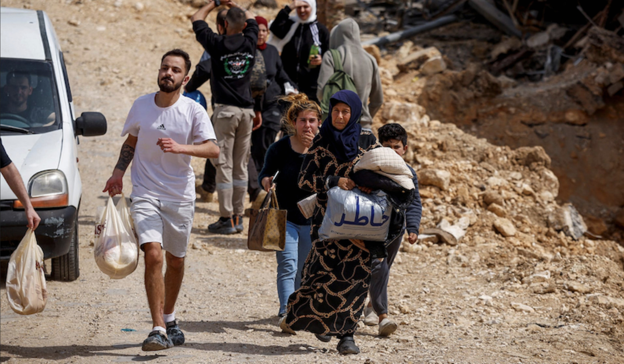 On apprend d'ailleurs, ce jour même du 18 avril, qu'Israël a décidé de déplacer la nouvelle ligne de démarcation de 10 km en profondeur sur le territoire libanais. Il décide d'y tracer une "ligne jaune", terme bizarre, comme sur une autoroute. Sur cette surface, qu'Israël décide de se réserver en dehors de toute règle internationale, (ah ! le respect des frontières si cher à l'Occident dans la guerre en Ukraine) Israël a entrepris de détruire toute vie, de raser toutes les habitations libanaises. Les bulldozers sont déjà à l'œuvre après que les maisons aient été dynamitées. Des maisons si jolies dans ce paysage de collines verdoyantes. Mais ça n'a l'air de ne troubler personne sur des plateaux si prompts à s'indigner quand il s'agit du drapeau jaune du Hezbollah.