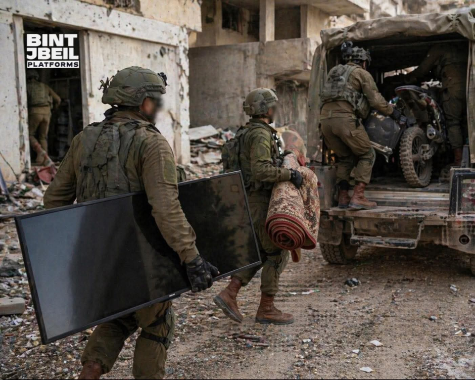 Le quotidien hébraïque "Haaretz" a révélé que des soldats, tant d'active que de réserve, pillent des biens civils dans des maisons et des commerces du sud du Liban, selon des témoignages de combattants et de commandants sur le terrain dans la région. D'après ces témoignages, le vol de motos, de téléviseurs, de tableaux, de canapés et de tapis est devenu un phénomène courant, sans qu'aucune mesure disciplinaire ne soit prise.