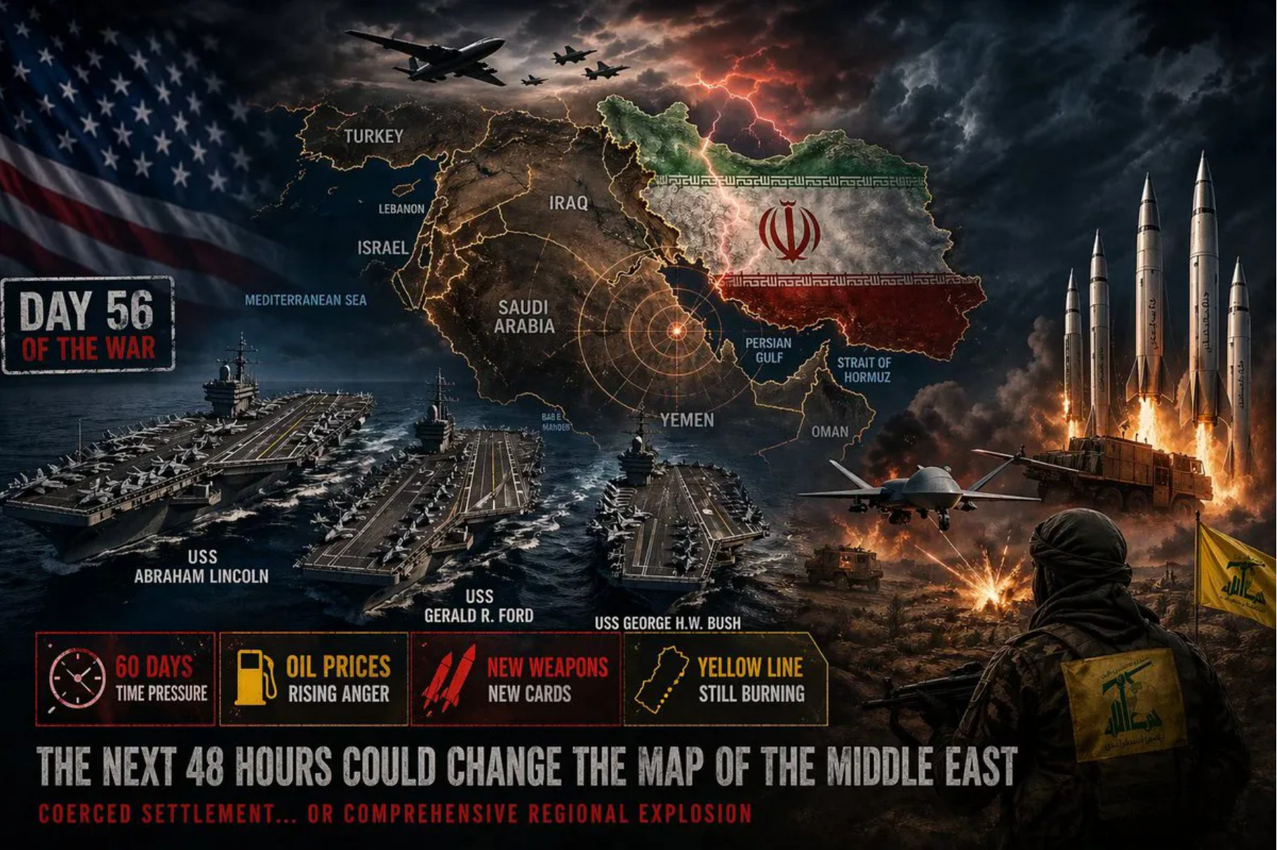 La région au bord de l'abîme... Trois porte-avions américains cernent le Moyen-Orient, et Téhéran prépare "l'enfer" en guise de riposte. - Talal Nahle