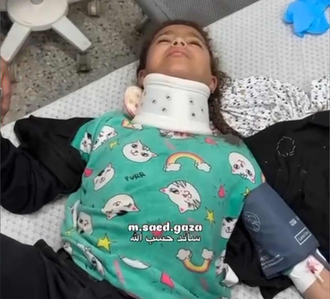 L'enfant palestinienne Zeina Battah a été grièvement blessée après avoir été touchée au cou par des tirs de chars d'occupation israéliens dans la ville de Beit Lahia, au nord de la bande de Gaza.