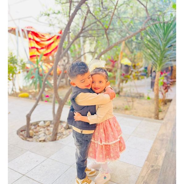 Les frères et sœurs palestiniens Batoul et Mohammad Zaid Aqel ont été tués dans le camp de réfugiés de Nuseirat, au centre de la bande de Gaza.