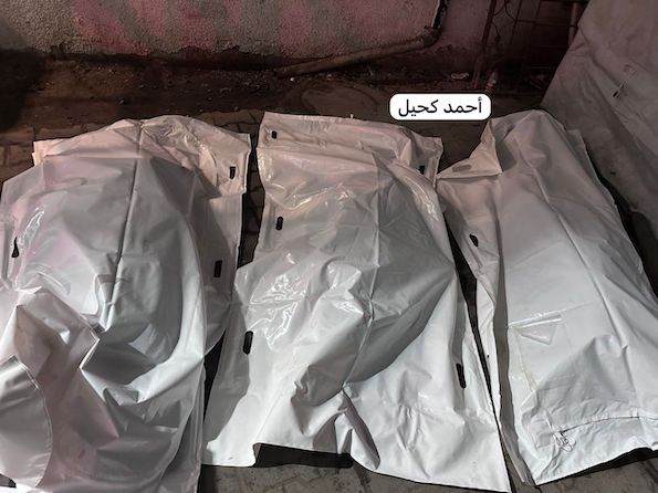 Devant l'hôpital des martyrs d'Al-Aqsa, des familles se sont rassemblées ce matin pour faire leurs adieux à leurs proches tués lors des horribles massacres israéliens de la nuit.