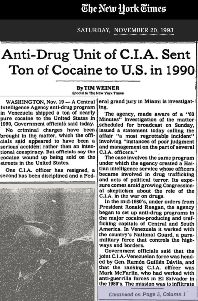 Mais il y a « mieux » encore, a déniché dimanche un internaute. En 1990, sous la présidence du Républicain George Bush senior, c'est carrément la CIA qui a organisé l'importation de plusieurs tonnes de cocaïne !