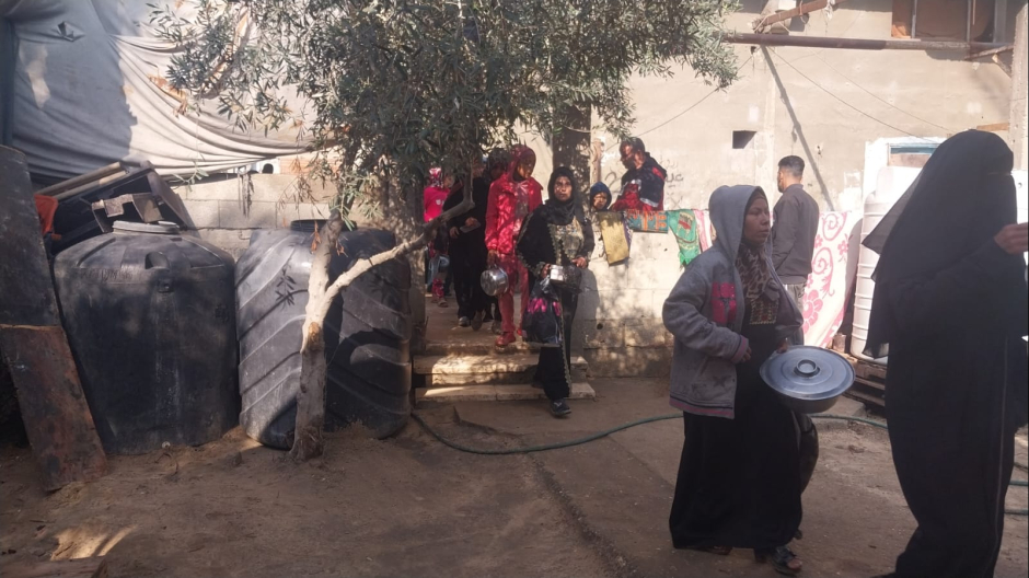 Dans les camps de déplacés de la zone d'Al-Mawasi à Khan Younès, où des milliers de familles de paysans déplacés vivent sur le littoral, les équipes mettent en œuvre le programme d'alimentation de manière régulière. Les repas sont préparés dans de grandes marmites et distribués aux familles dans le besoin, tandis que d'autres repas sont acheminés vers des camps voisins. L'importance de ce programme réside dans le fait qu'il constitue une véritable bouée de sauvetage, en particulier pour les enfants souffrant de malnutrition et pour les femmes enceintes. Le repas chaud n'est pas seulement de la nourriture : c'est un moment de chaleur, un sentiment temporaire de sécurité, et la preuve que quelqu'un se soucie encore d'eux.
