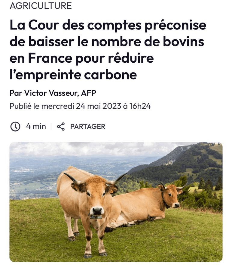 Et les financeurs de l'OMS ne veulent pas de l'agriculture traditionnelle, tous secteurs confondus. Du coup, les gouvernants trouvent que les vaches ont une mauvaise empreinte carbone :