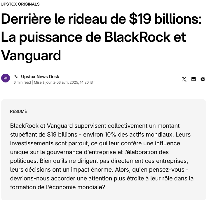 Et ce n'est pas fini ! Bloomberg annonçait que les 2 entités contrôleraient les 20 trillions d'ici 2027. Comment le savaient-ils si nous ne sommes pas dans une stratégie d'économie planifiée et de dépossession globalisée qui a le soutien des gouvernants ?