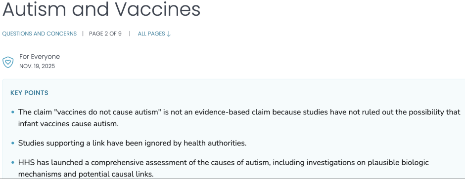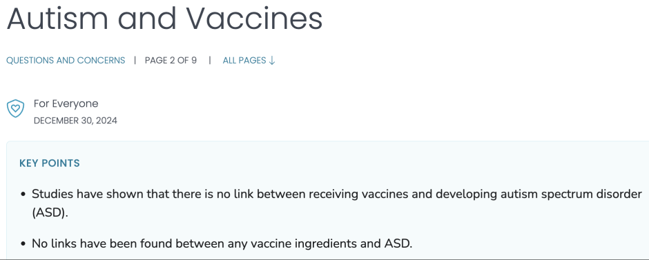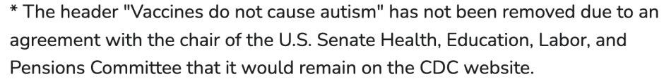This is a historic shift, as for decades, the CDC has belligerently refused to consider anything besides the axiom "vaccines do not cause autism" (e.g., after a study they conducted showed it did, that data was buried until a CDC whistleblower revealed it). Notably, the new page makes a point to highlight this vaccine zealotry by including this heading along with a note about Senator Cassidy at the end of the page: