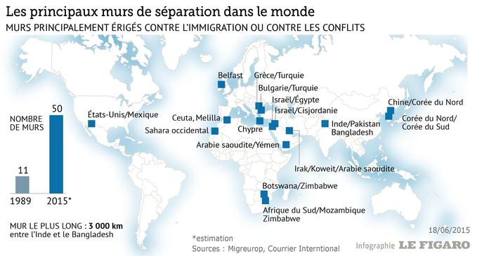 Source de la carte : Les principaux murs de séparation dans le monde, Le Figaro, 18 juin 2015.