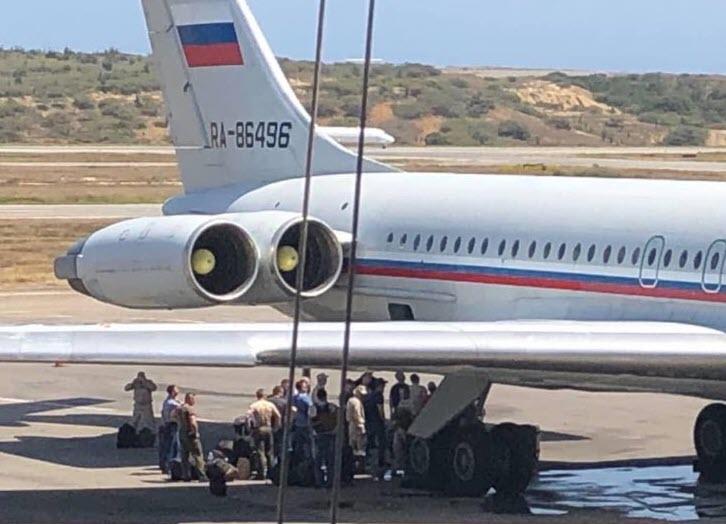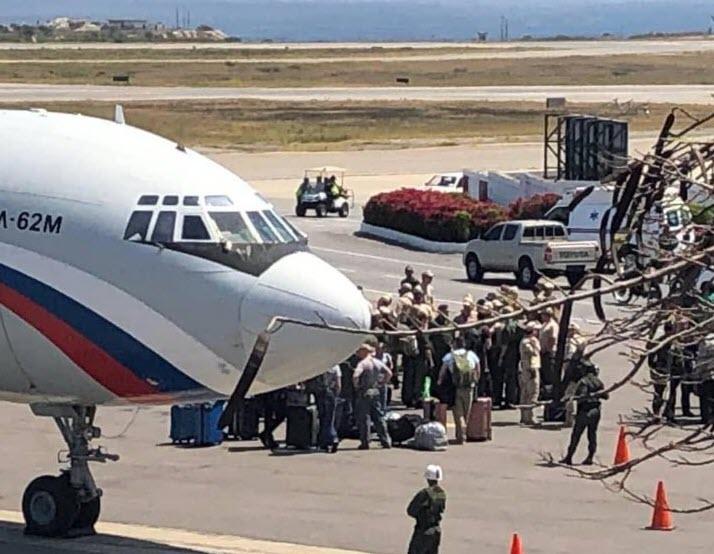 « DERNIÈRE MINUTE Cet après-midi, une délégation de 99 soldats russes est arrivée à l'aéroport de Maiquetia, sous le commandement du ministre de la Défense du plus grand pays, Vasilly Tonkoshkurov. Ils ont été reçus sur la rampe présidentielle par la VA Marianny Mata, directrice Affaires internationales et Intégration (1/2)(2/2) Immédiatement après (14h), un cargo russe transportant 35 tonnes de matériel appartenant au contingent qui venait de débarquer est arrivé au même terminal. Le personnel de l'ambassade de Russie et de la Grande-Bretagne Edgar Colina Reyes assistait également à la procession de réception «