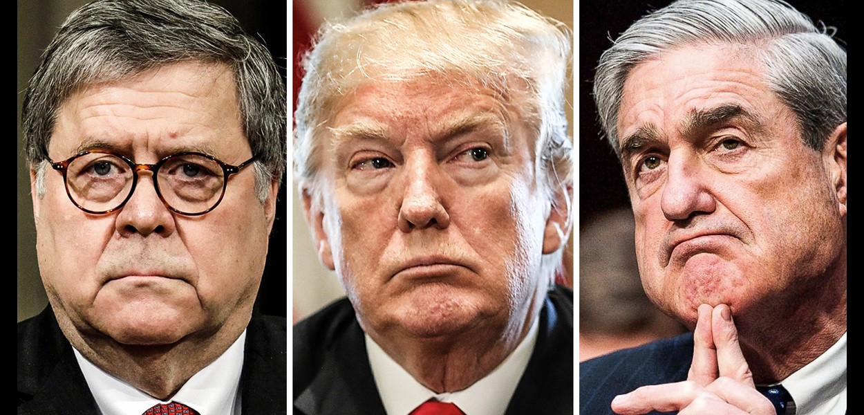 Photo: William Barr, Donald Trump et Robert Mueller