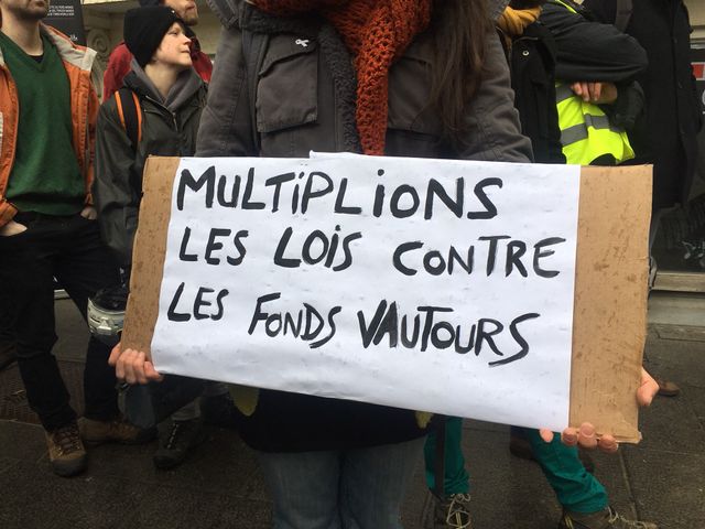 Cette situation est aggravée par l'action de certains créanciers surnommés « fonds vautours ». Les fonds vautours sont « des entités commerciales privées qui font l'acquisition, par achat, cession ou toute autre forme de transaction, ou parfois par le biais de procédures judiciaires, de dettes impayées ou en déshérence, en vue de réaliser un profit élevé ». Ils « acquièrent en général sur le marché secondaire la dette souveraine de pays pauvres défaillants à un prix très inférieur à la valeur nominale de celle-ci puis tentent, par la voie judiciaire, la saisie d'actifs ou des pressions politiques, d'en recouvrer le montant intégral, majoré d'intérêts, de pénalités et de frais de justice [3] ».