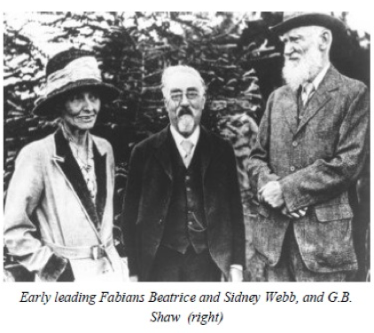 Le programme de la Fabian society était axé sur de vastes programmes d'aide sociale, comme les soins de santé universels, l'éducation de masse et l'amélioration des conditions de travail, qui visaient à attirer les populations défavorisées. Dans le cadre du programme fabien, de tels programmes ne contenaient aucune substance réelle, car le véritable moyen de justifier leur création, c'est-à-dire l'activation de la raison consciente par le progrès scientifique et technologique, était interdit à tous les membres de la société par principe.