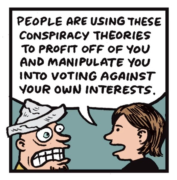 Les gens utilisent ces théories du complot pour profiter de toi et te manipuler pour qu tu votes contre tes propres intérêts