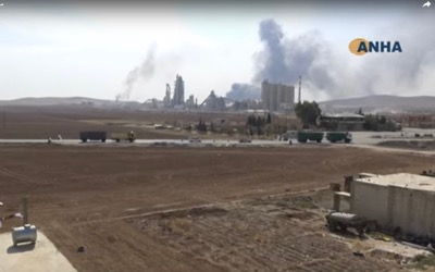 La Coalition internationale a incendié, le 16 octobre 2019, l'usine Lafarge de Jalabiyeh (à la frontière turque, au nord d'Alep), avant que l'armée arabe syrienne n'en prenne possession.