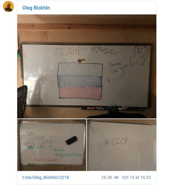 Le correspondant de guerre russe Oleg Blokhine a publié des images prises à la base militaire américaine abandonnée de la ville, dénonçant des inscriptions sur les murs laissées par les militaires de l'armée états-unienne et adressées à la Russie.