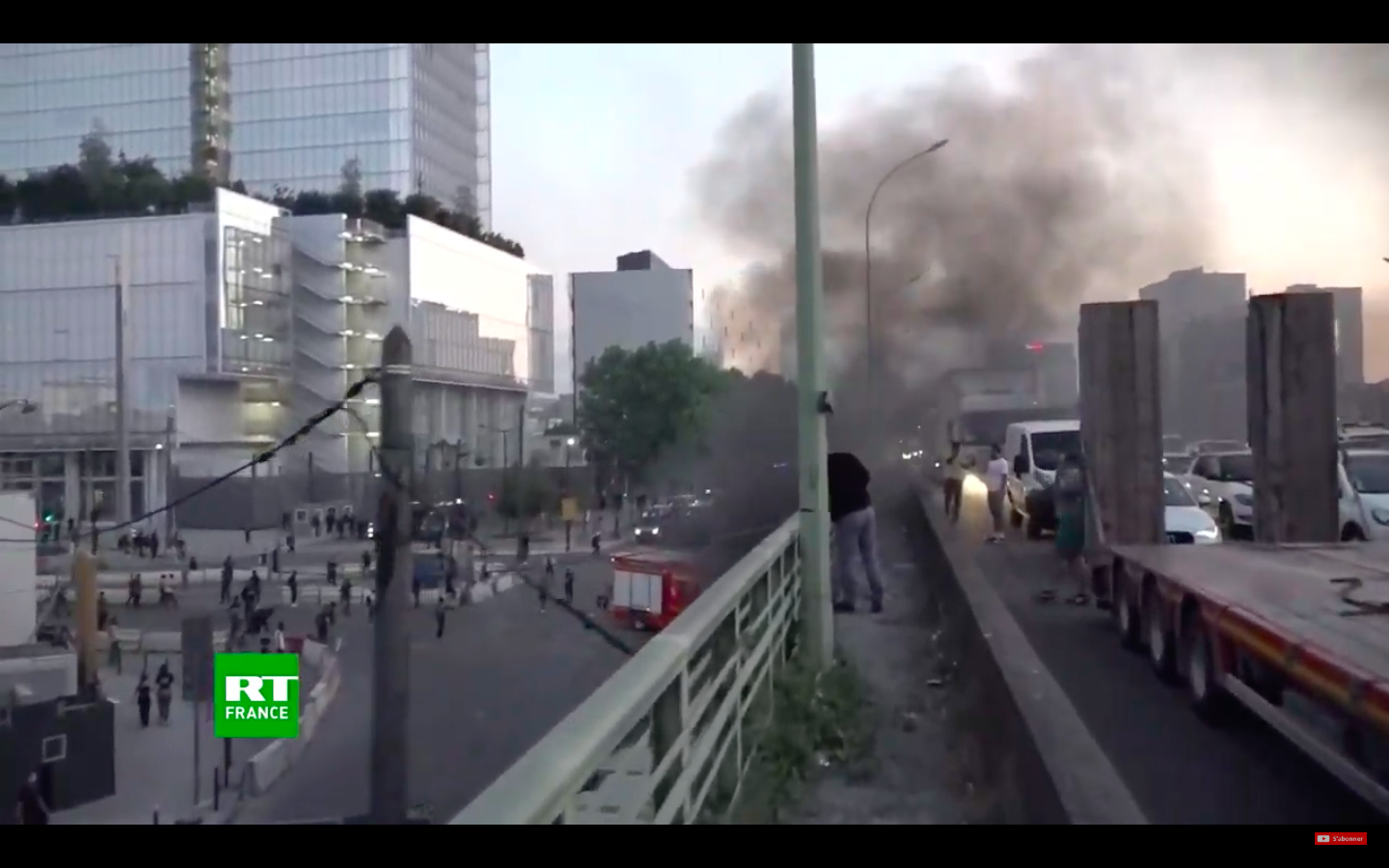 - |Incendie sous le périphérique, à proximité du TGI de Paris où se tenait un rassemblement #justicepouradama #JusticeForGeorgeFloyd #BlackLivesMatter