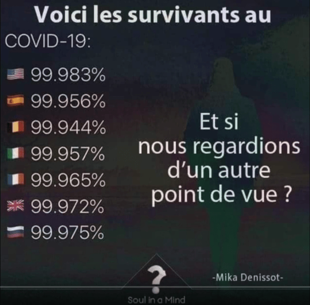 À ce constat s'ajoute le fait statistique aggravant que l'âge médian de la population a toujours reculé pour atteindre 41 ans en 2020. Pour le dire autrement, on mourait davantage avant avec une population plus jeune, qu'en 2020 avec une population plus âgée. Et ne parlons pas du fait que ceux qui ont déclenché la maladie survivent à plus de 99 %.