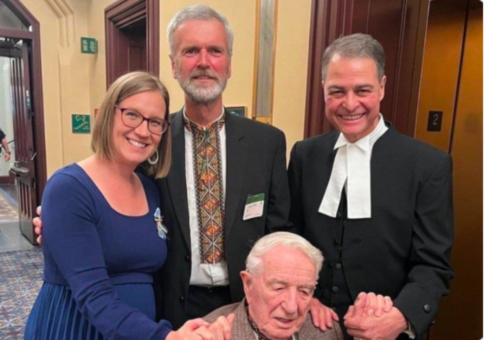 Les membres canadiens de la Chambre des communes ont rendu hommage à Yaroslav Gunka, âgé de 98 ans, en compagnie de représentants officiels. Il avait été invité par le président de la Chambre des communes, Anthony Rota, qui l'a présenté comme un héros de guerre ayant combattu au sein de la première division ukrainienne pour l'indépendance de l'Ukraine vis-à-vis de la Russie. Les députés canadiens ont applaudi et Zelensky a levé le poing en signe d'appréciation, tandis que M. Gunka a été salué à deux reprises depuis la tribune. Les Amis du Centre Simon Wiesenthal pour l'Holocauste ont publié une déclaration affirmant que la division était «responsable du meurtre de masse de civils innocents avec un niveau inimaginable de cruauté et de méchanceté».