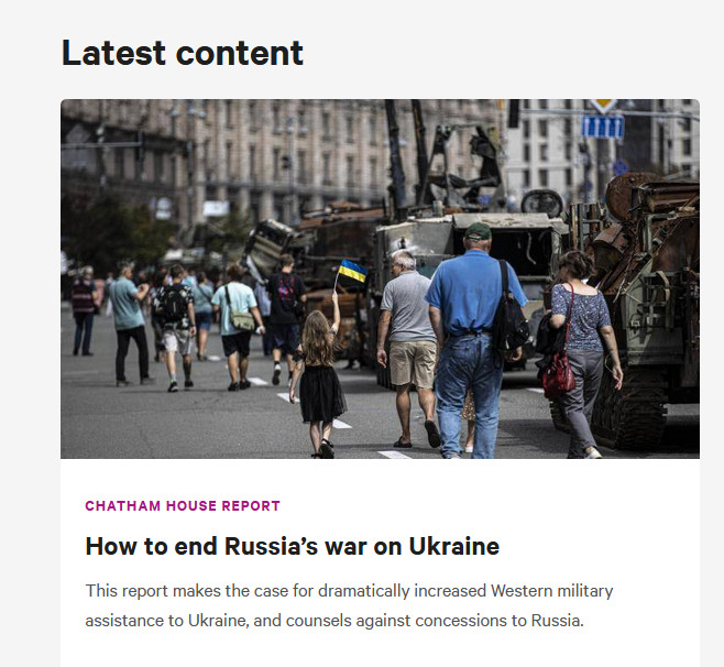 Chatham House has released a report which "makes the case for dramatically increased Western military assistance to Ukraine, and argues against concessions to Russia".