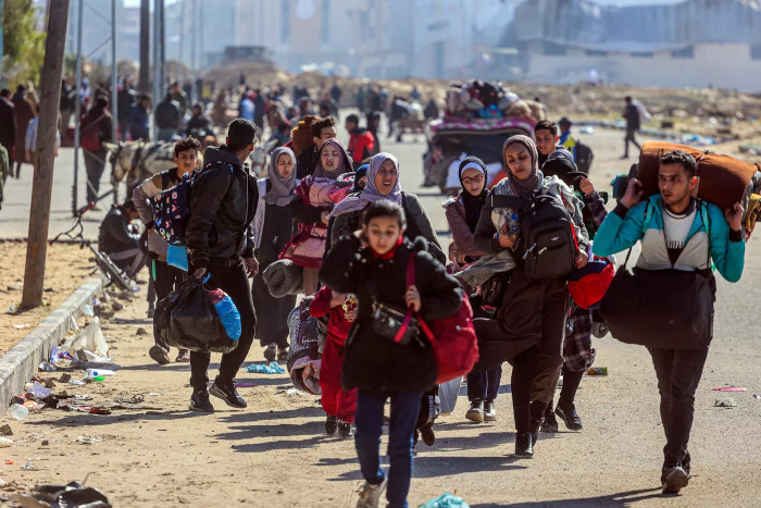 30 janvier 2024 - Les Palestiniens fuient autant que possible les attaques - bombardements aériens et tirs d'artillerie - des troupes israéliennes à Khan Yunis - Photo : Ahmed Zaqout / via Memo