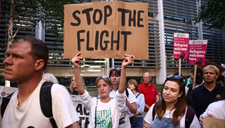 D'autres ont décidé de protester contre ce projet d'expulsion. Depuis l'adoption du Plan Rwanda, le gouvernement est confronté à une fronde croissante. D'une part venant des ONG, qui multiplient les actions et les prises de position contre ce plan jugé "inhumain". Mais la mobilisation vient aussi des exilés eux-mêmes, terrifiés à l'idée d'être envoyés dans un pays qu'ils ne connaissent pas.