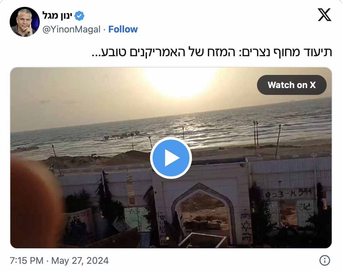 Le 28 mai, les troupes américaines ont "temporairement démonté" un ponton flottant construite sur la côte de Gaza après plusieurs incidents au cours desquels quatre navires militaires américains se sont échoués, un membre du service a été grièvement blessé et une partie de la structure a été endommagée par le mauvais temps.