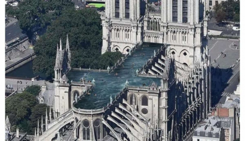 L'architecture traditionnelle, avec son sens sublime des proportions et sa capacité à impressionner le spectateur, a été remplacée par des constructions d'acier et de verre froides et sans âme, qui n'impressionnent ni n'inspirent. Les villes occidentales modernes sont devenues des lieux stériles, où l'architecture moderne est soigneusement incisée dans et parmi les perles classiques sporadiques qui existent encore. Lorsque Notre Dame a perdu son toit à la suite d'un incendie, un concours d'architectes a été organisé pour trouver une solution de remplacement. Parmi les idées soumises figurait une véritable piscine au sommet de l'église, je ne vous le fais pas dire (photo, ci-dessous). Le fait qu'un lieu d'une telle importance historique et culturelle puisse être violé par des architectes modernes, fétichistes et laids, est clairement révélateur de la folie moderne.