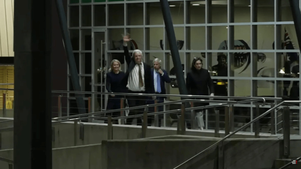 Julian Assange et son équipe juridique arrivent à Canberra, en Australie