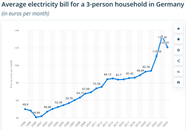 Factura media de electricidad de un hogar de 3 personas en Alemania