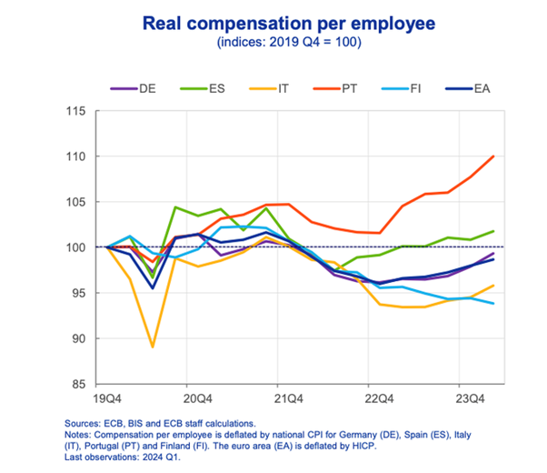 De hecho, los salarios reales en Alemania siguen estando por debajo de los niveles anteriores a la pandemia, al igual que en muchos países de la UE.