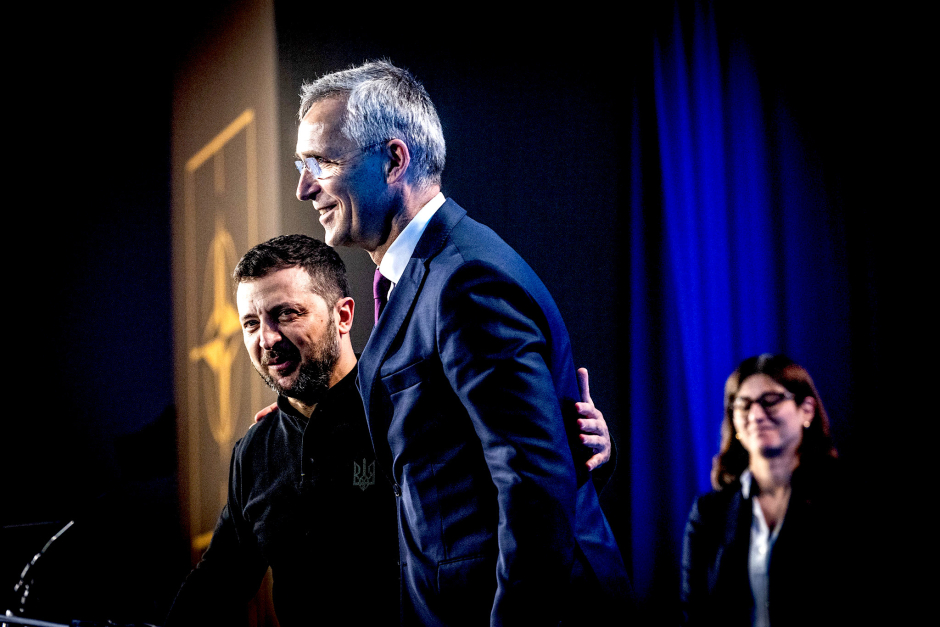 Le président ukrainien Volodymyr Zelensky et le secrétaire général de l'OTAN Jens Stoltenberg lors du sommet de l'alliance militaire à Washington en juillet. (OTAN/Flicker, CC BY-NC-ND 2.0)