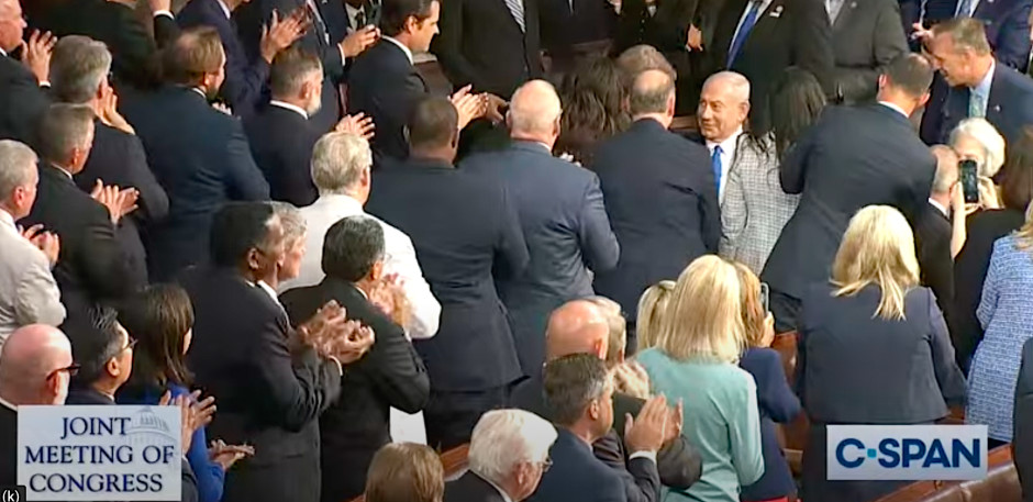 Netanyahu reçoit une standing ovation alors qu'il entre en session conjointe du Congrès mercredi. (Capture d'écran C-Span)